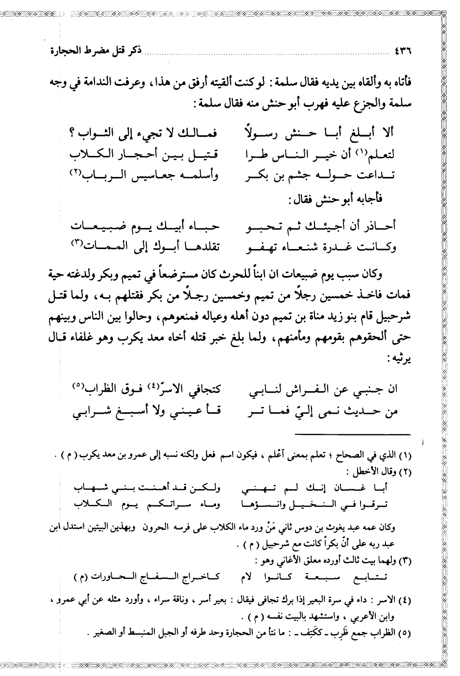 ( لتعلم أن خير الناس طرا ... قتيل بين أحجار الكلاب )
