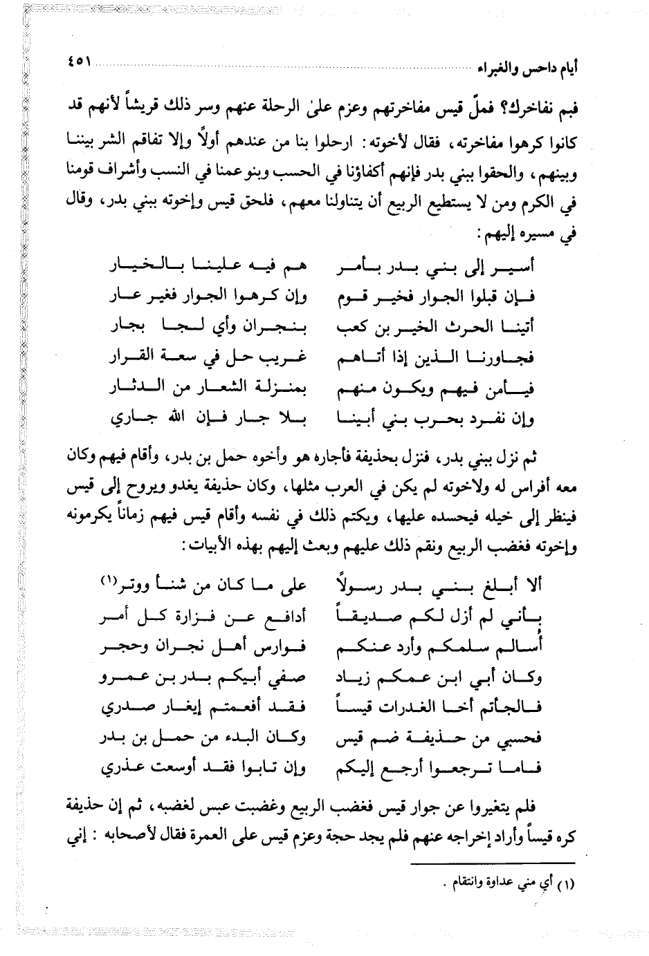 ( فحسبي من حذيفة ضم قيس ... وكان البدء من حمل بن بدر )