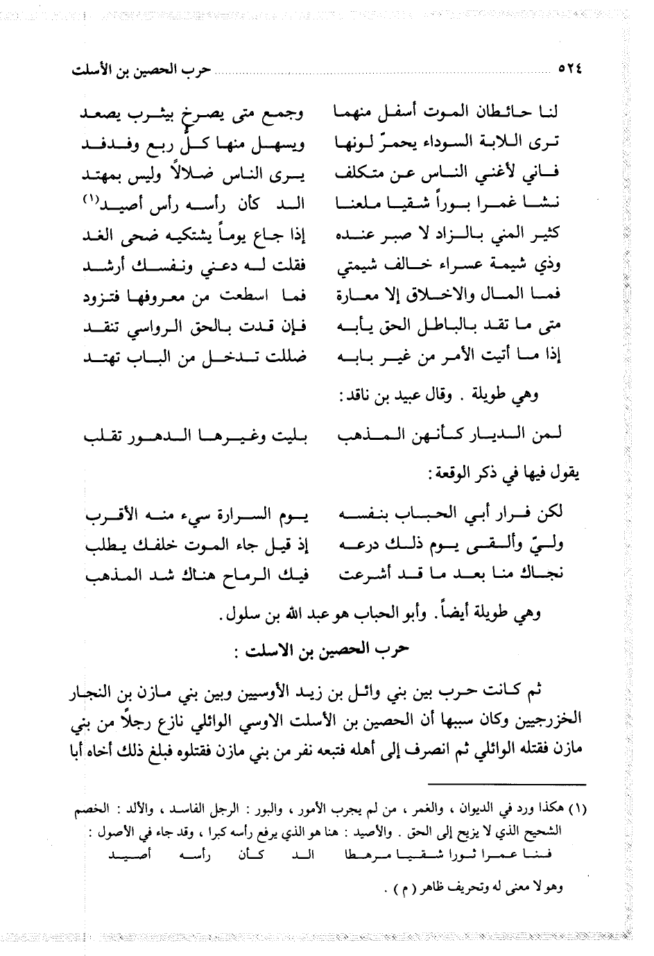 ثم كانت حرب بين بني وائل بن زيد الأوسيين وبين بني مازن بن النجار الخزرجيين وكان سببها أن الحصين بن الأسلت الاوسي الوائلي نازع رجلا من بني مازن فقتله الوائلي ثم انصرف إلى أهله فتبعه نفر من بني مازن فقتلوه فبلغ ذلك أخاه أبا