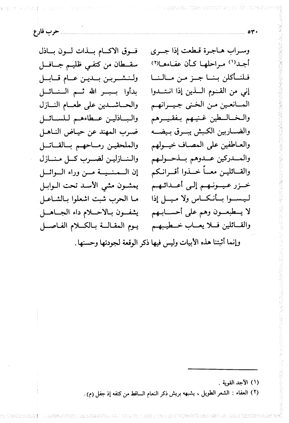 وإنما أثبتنا هذه الأبيات وليس فيها ذكر الوقعة لجودتها وحسنها