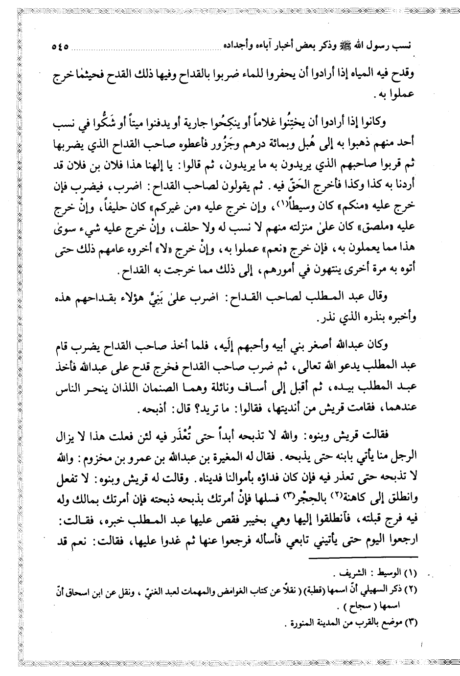 وقال عبد المطلب لصاحب القداح اضرب على بني هؤلاء بقداحهم هذه وأخبره بنذره الذي نذر