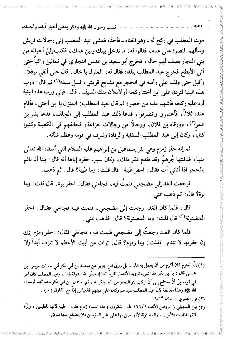 فلما كان الغد رجعت إلى مضجعي فنمت فيه فجاءني فقال احفر زمزم إنك إن حفرتها لا تندم فقلت وما زمزم قال تراث من أبيك الأعظم لا تنزف أبدا ولا