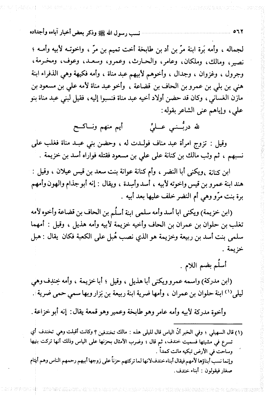 ابن كنانة ويكن أبا النضر وأم كنانة عوانة بنت سعد بن قيس عيلان وقيل هند ابنة عمرو بن قيس واخوته لأبيه أسد وأسدة ويقال إنه أبو جذام والهون وأمهم برة بنت مرو وهي أم النضر خلف عليها بعد أبيه