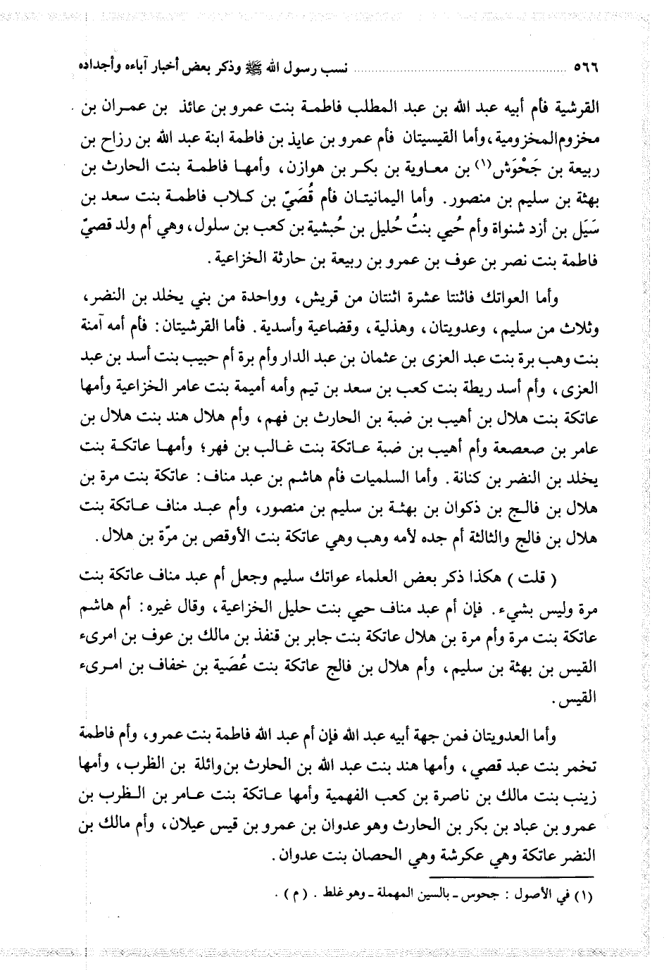 قلت هكذا ذكر بعض العلماء عواتك سليم وجعل أم عبد مناف عاتكة بنت مرة وليس بشيء فإن أم عبد المناف حيي بنت حليل الخزاعية وقال غيره أم هاشم عاتكة بنت مرة وأم مرة بن هلال عاتكة بنت جابر بن قنفذ بن مالك بن عوف بن امرئ القيس بن بهثة بن سليم وأم هلال بن فالج عاتكة بنت عصية بن خفاف بن امرئ القيس