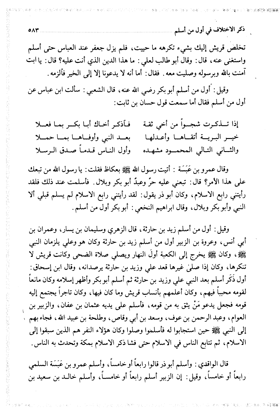 قال الواقدي وأسلم أبو ذر قالوا رابعا أو خامسا وأسلم عمرو بن عبسة السلمي رابعا أو خامسا وقيل إن الزبير أسلم رابعا أو خامسا وأسلم خالد بن سعيد بن