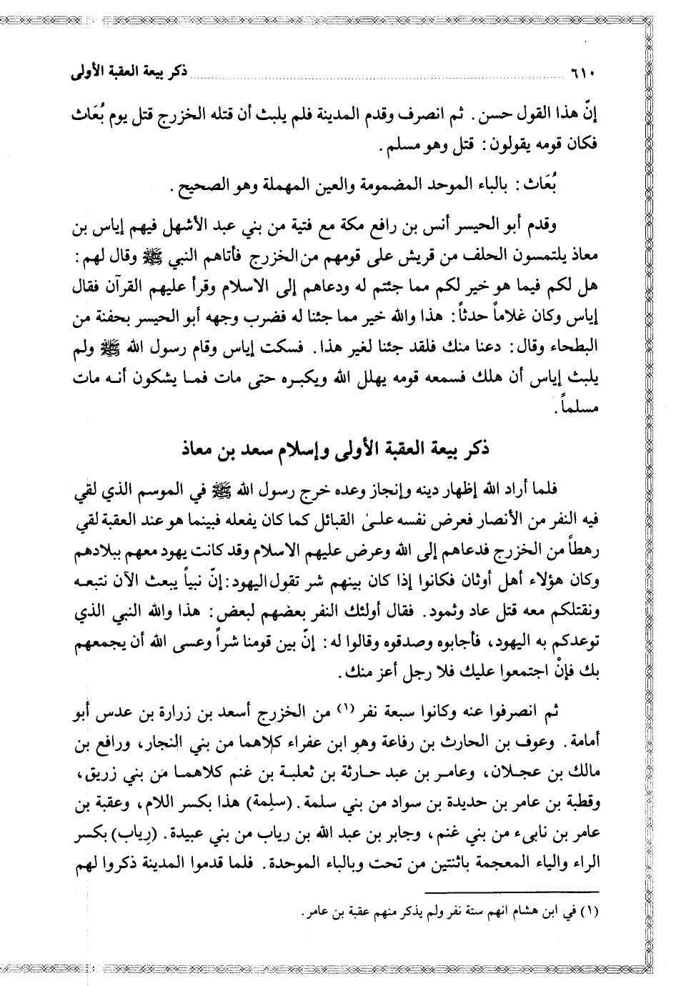 $ ذكر بيعة العقبة الأولى وإسلام سعد بن معاذ $