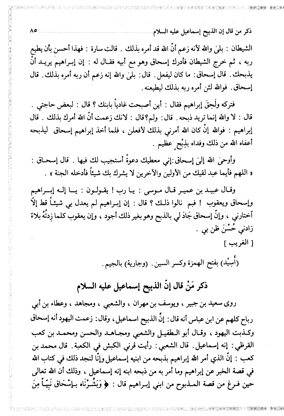 $ ذكر من قا لإن الذبيح إسماعيل عليه السلام