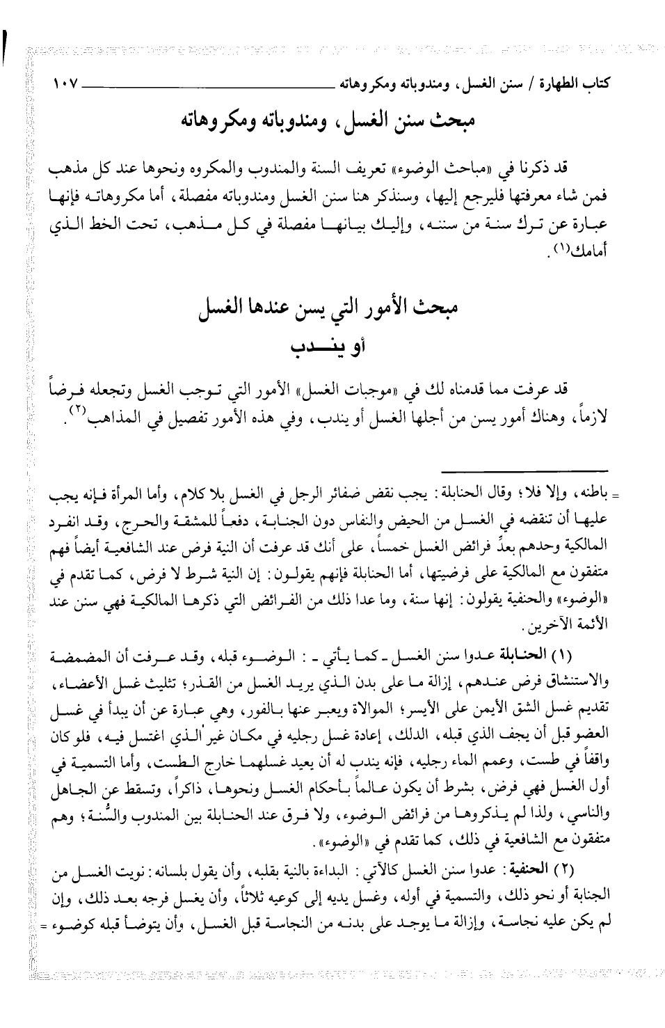 قد عرفت مما قدمنا لك في "موجبات الغسل" الأمور التي توجب الغسل وتجعله فرضاً لازماً، وهناك أمور يسن من أجلها الغسل أو يندب، وفي هذه الأمور تفصيل في المذاهب (¬2)
