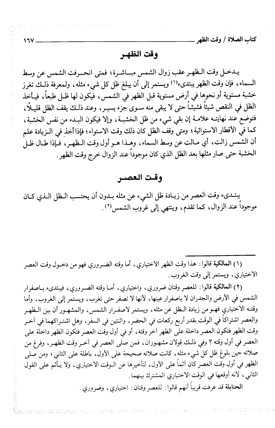 (¬1) المالكية قالوا: هذا وقت الظهر الاختياري، أما وقته الضروري فهو من دخول وقت العصر الاختياري، ويستمر إلى وقت الغروب