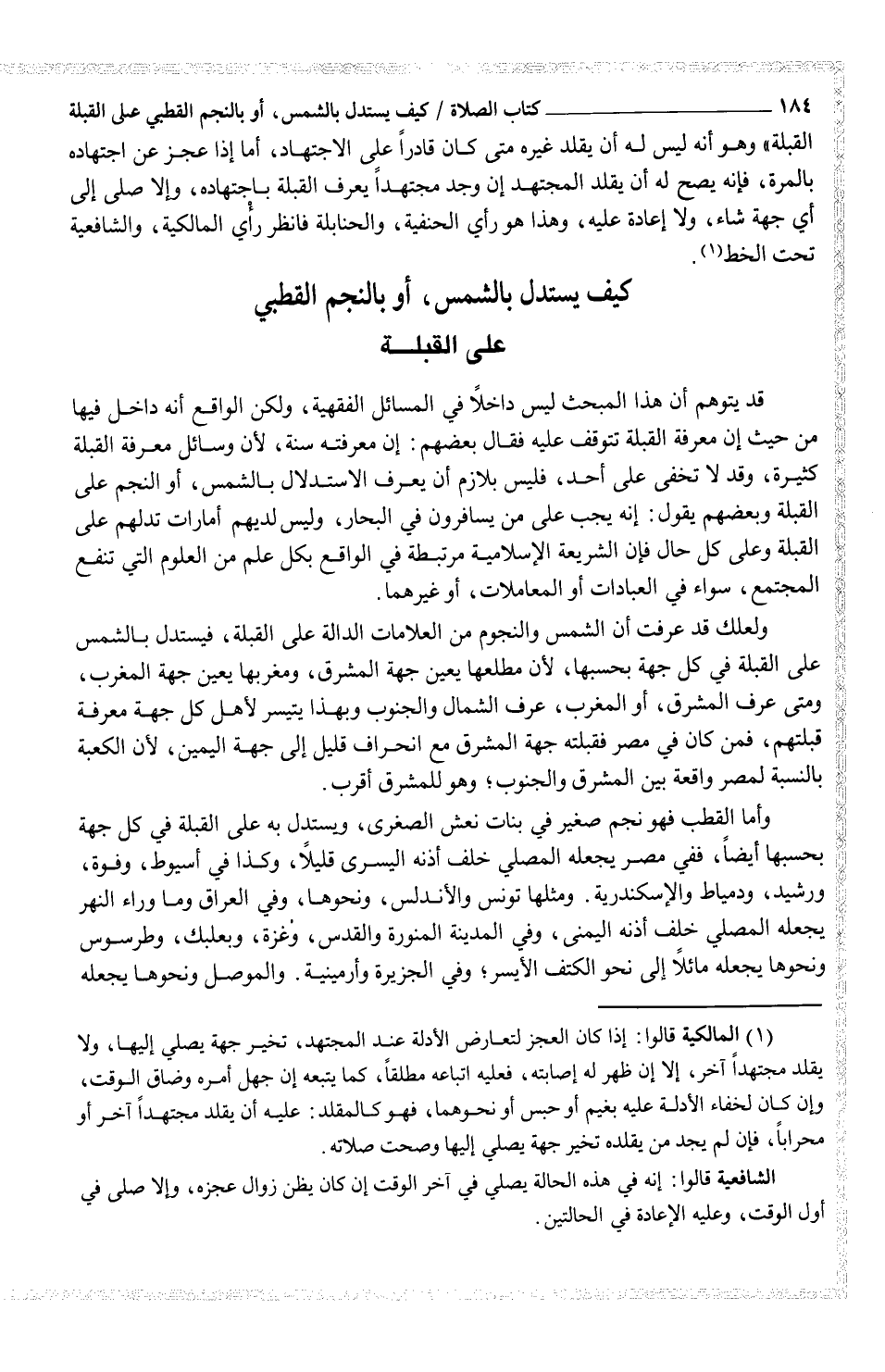 قد يتوهم أن هذا المبحث ليس داخلاً في المسائل الفقهية، ولكن الواقع أنه داخل فيها من حيث إن معرفة القبلة تتوقف عليه فقال بعضهم: إن معرفته سنة، لأن وسائل معرفة القبلة كثيرة، وقد لا تخفى على أحد، فليس بلازم أن يعرف الاستدلال بالشمس، أو النجم على القبلة وبعضهم يقول: إنه يجب على من يسافرون في البحار، وليس لديهم أمارات تدلهم على القبلة وعلى كل حال فإن الشريعة الإسلامية مرتبطة في الواقع بكل علم من العلوم التي تنفع المجتمع، سواء في العبادات أو المعاملات، أو غيرهما.