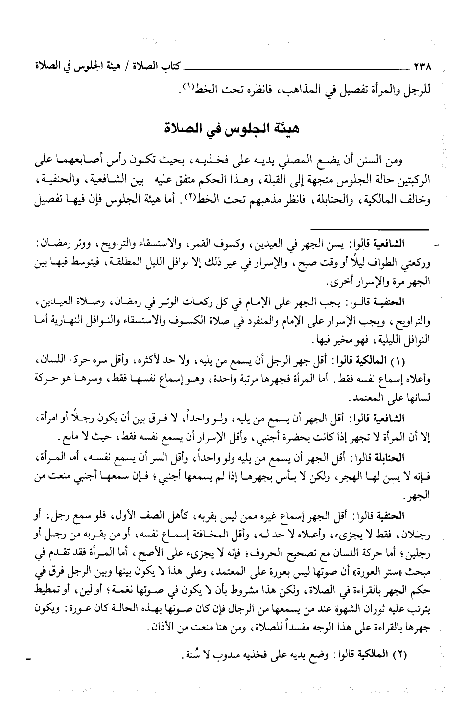 (¬2) المالكية قالوا: وضع يديه على فخذيه مندوب لا سُنة.