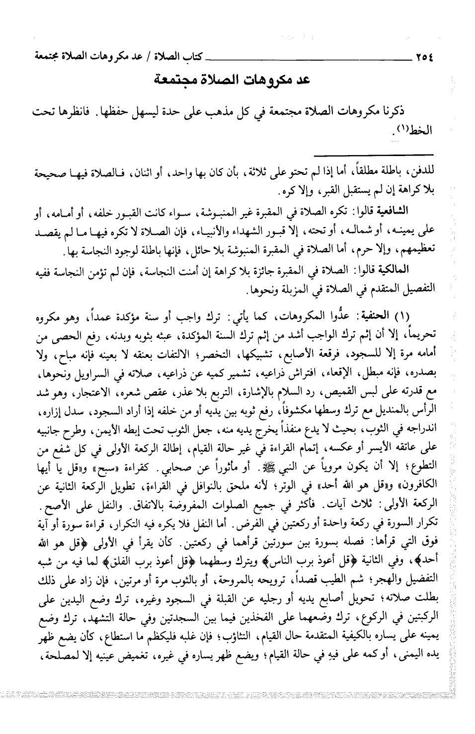 ذكرنا مكروهات الصلاة مجتمعة في كل مذهب على حدة ليسهل حفظها. فانظرها تحت الخط (¬1) .