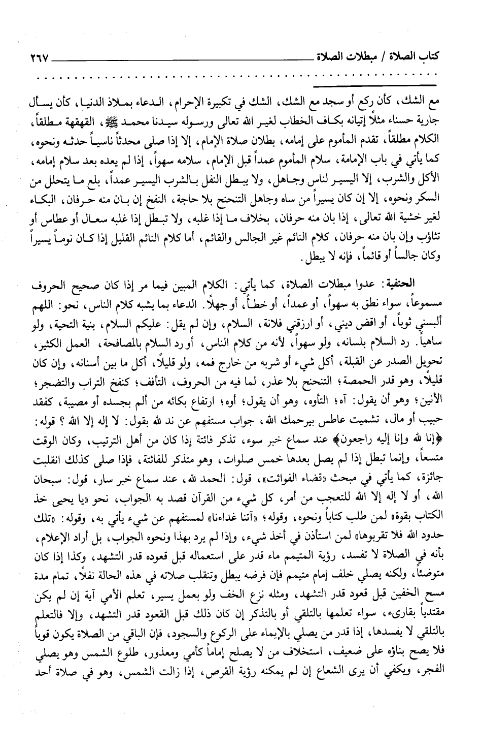 الحنفية: عدوا مبطلات الصلاة، كما يأتي: الكلام المبين فيما مر إذا كان صحيح الحروف مسموعاً، سواء نطق به سهواً، أو عمداً، أو خطأً، أو جهلاً. الدعاء بما يشبه كلام الناس، نحو: اللهم البسني ثوباً، أو اقض ديني، أو ارزقني فلانة، السلام، وإن لم يقل: عليكم السلام، بنية التحية، ولو ساهياً.