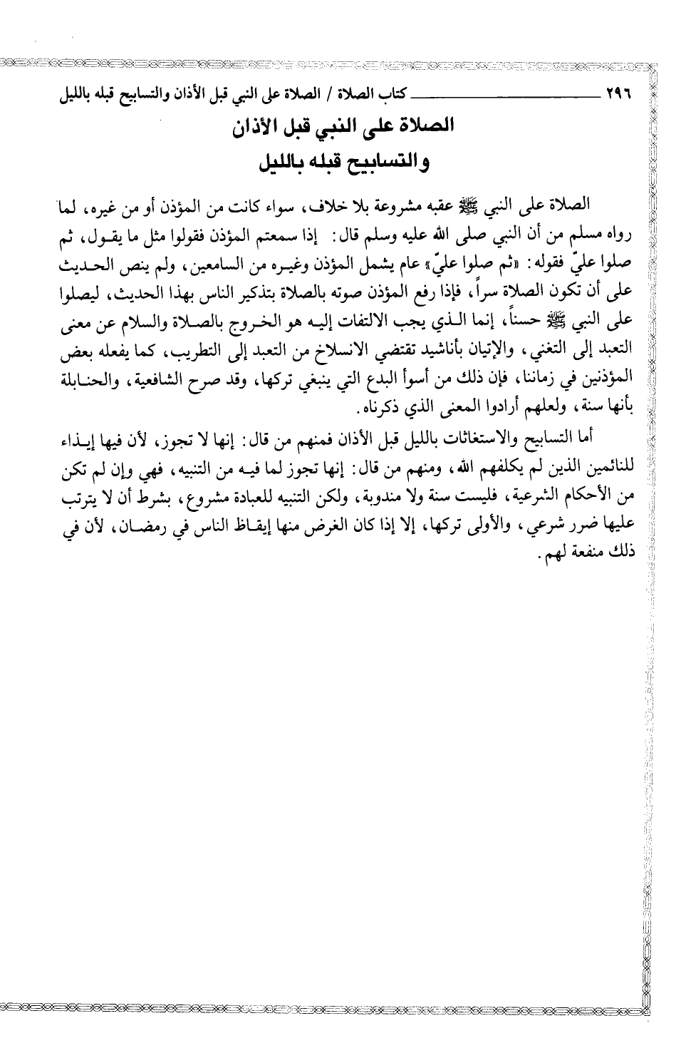 الصلاة على النبي قبل الأذان والتسابيح قبله بالليل