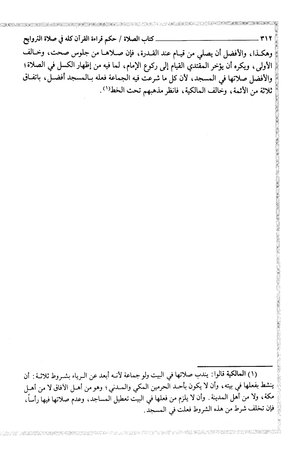 (¬1) المالكية قالوا: يندب صلاتها في البيت ولو جماعة لأنه أبعد عن الرياء بشروط ثلاثة: أن ينشط بفعلها في بيته، وأن لا يكون بأحد الحرمين المكي والمدني؛ وهو من أهل الآفاق لا من أهل مكة، ولا من أهل المدينة. وأن لا يلزم من فعلها في البيت تعطيل المساجد، وعدم صلاتها فيها رأساً فإن تخلف شرط من هذه الشروط فعلت في المسجد