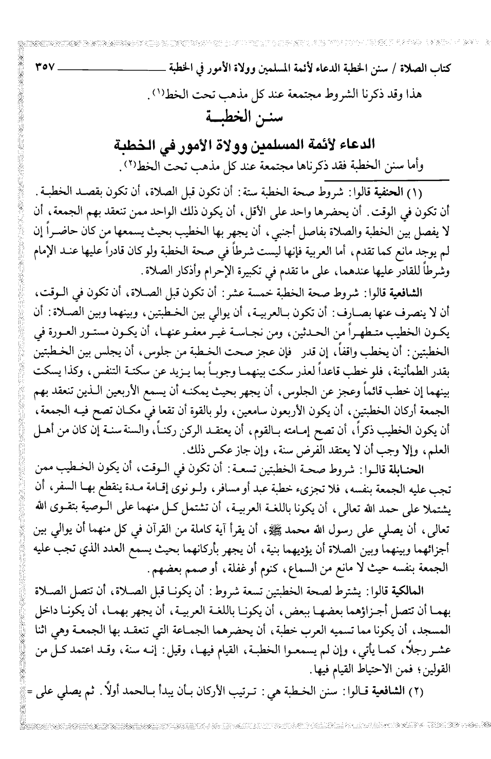 وأما سنن الخطبة فقد ذكرناها مجتمعة عند كل مذهب تحت الخط (¬2) .