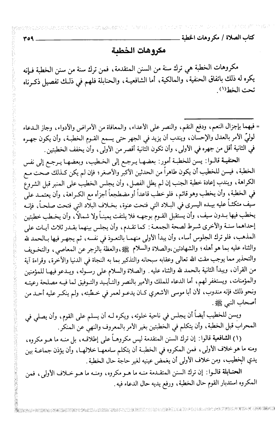 (¬1) الحنابلة قالوا: إن ترك السنن المتقدمة منه ما هو مكروه، ومنه ما هو خلاف الأولى، فمن المكروه استدبار القوم حال الخطبة، ورفع يديه حال الدعاء فيه