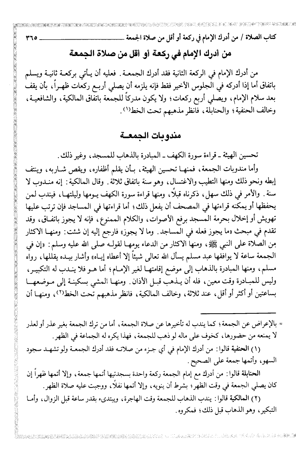(¬1) الحنفية قالوا: من أدرك الإمام في أي جزء من صلاته فقد أدرك الجمعة ولو تشهد سجود السهو، وأتمها جمعة على الصحيح.