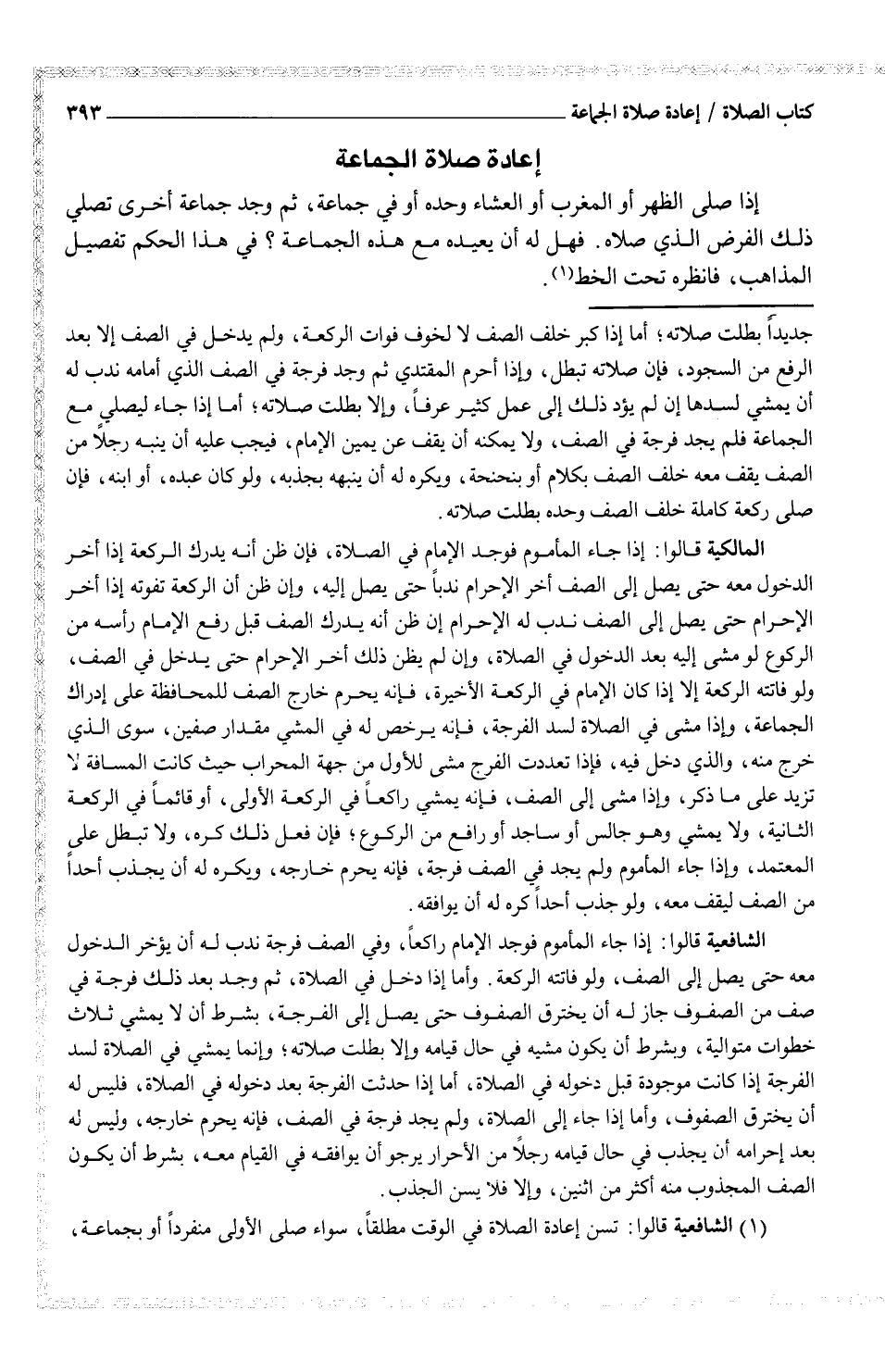 (¬1) الشافعية قالوا: تسن إعادة الصلاة في الوقت مطلقاً، سواء صلى الأولى منفرداً أو بجماعة،