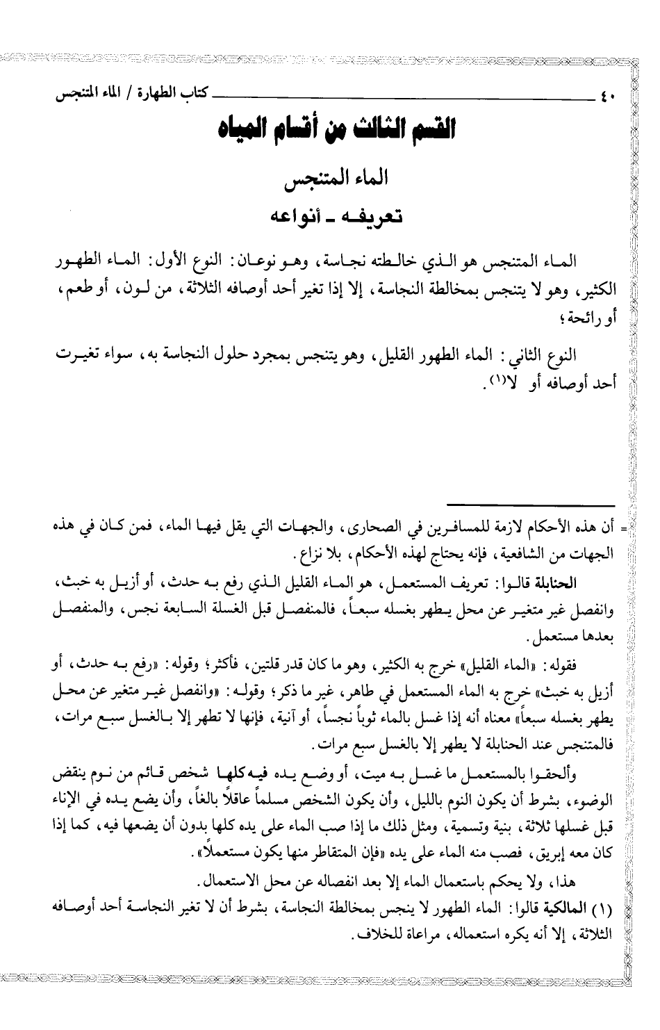 القسم الثالث من أقسام المياه: الماء المتنجس