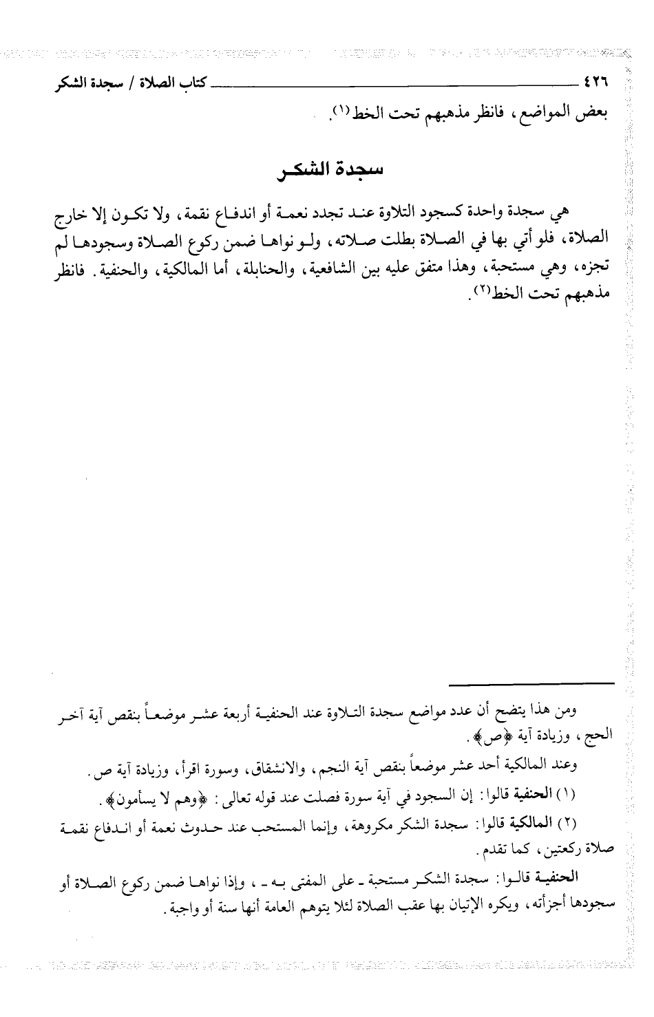 (¬2) المالكية قالوا: سجدة الشكر مكروهة، وإنما المستحب عند حدوث نعمة أو اندفاع نقمة صلاة ركعتين، كما تقدم.
