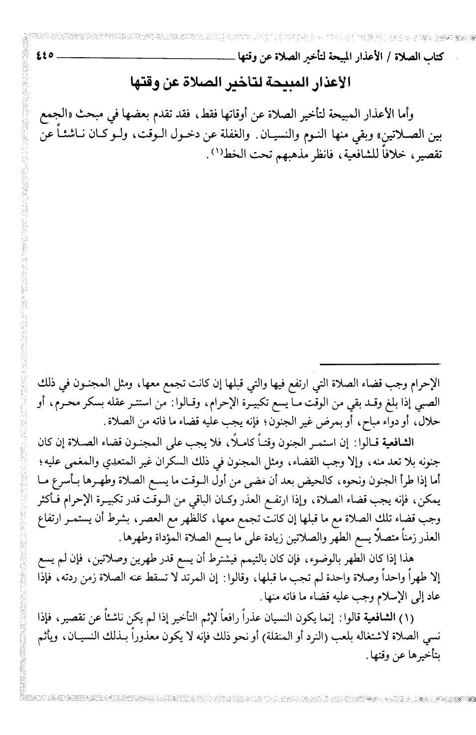 وأما الأعذار المبيحة لتأخير الصلاة عن أوقاتها فقطن فقد تقدم بعضها في مبحث "الجمع بين الصلاتين" وبقي منها النوم والنسيان. والغفلة عن دخول الوقت، ولو كان ناشئاً عن تقصير، خلافاً للشافعية، فانظر مذهبهم تحت الخط (¬1) .