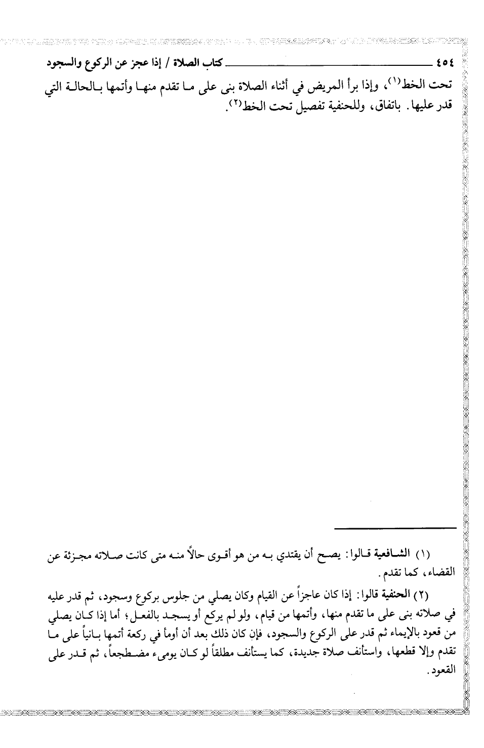 تحت الخط (¬1) ، وإذا برأ المريض في أثناء الصلاة بنى على ما تقدم منها وأتمها بالحالة التي قدر عليها. باتفاق، وللحنفية تفصيل تحت الخط (¬2) .