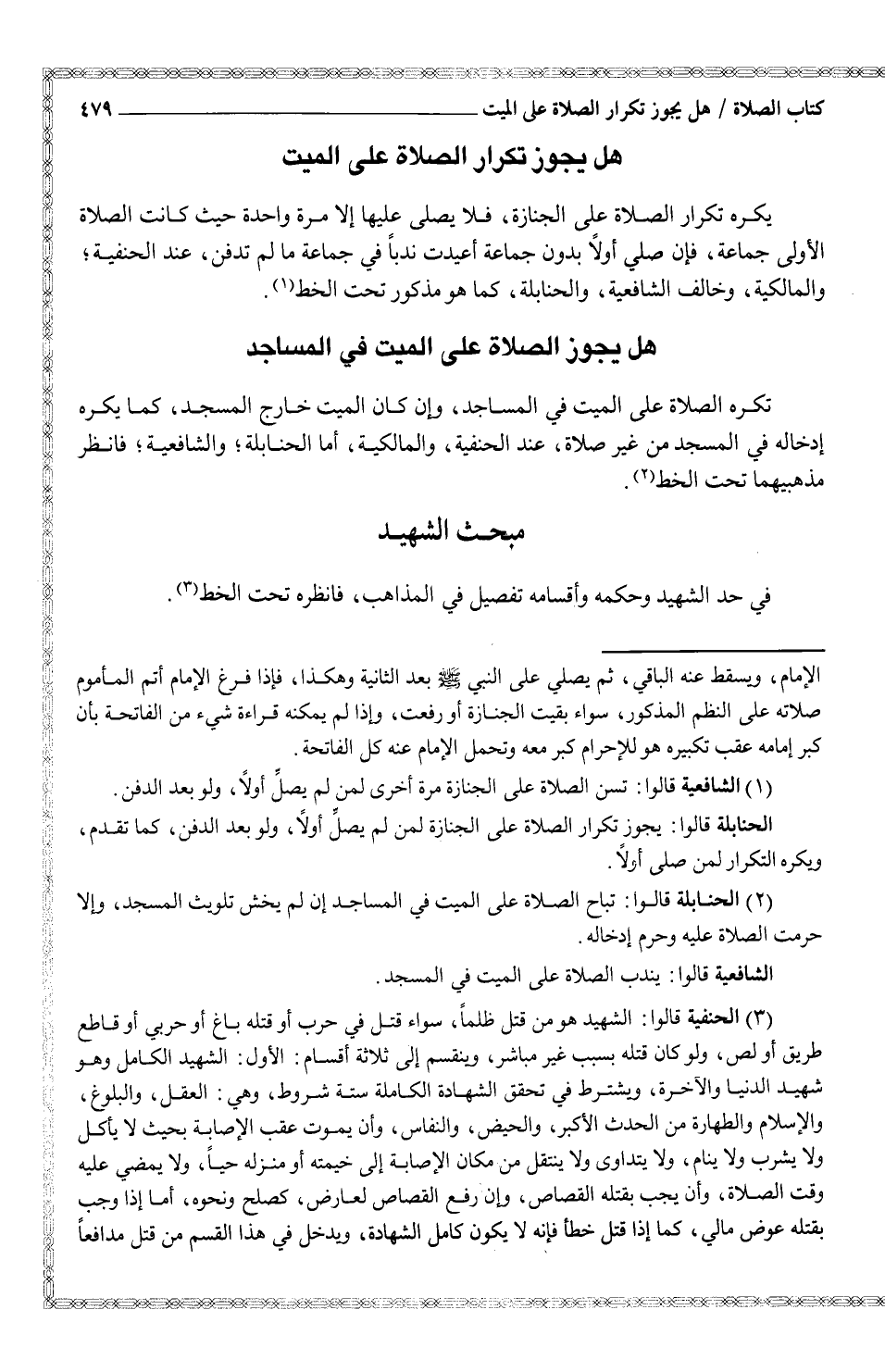 (¬2) الحنابلة قالوا: تباح الصلاة على الميت في المساجد إن لم يخش تلويث المسجد، وغلا حرمت الصلاة عليه وحرم إدخاله.