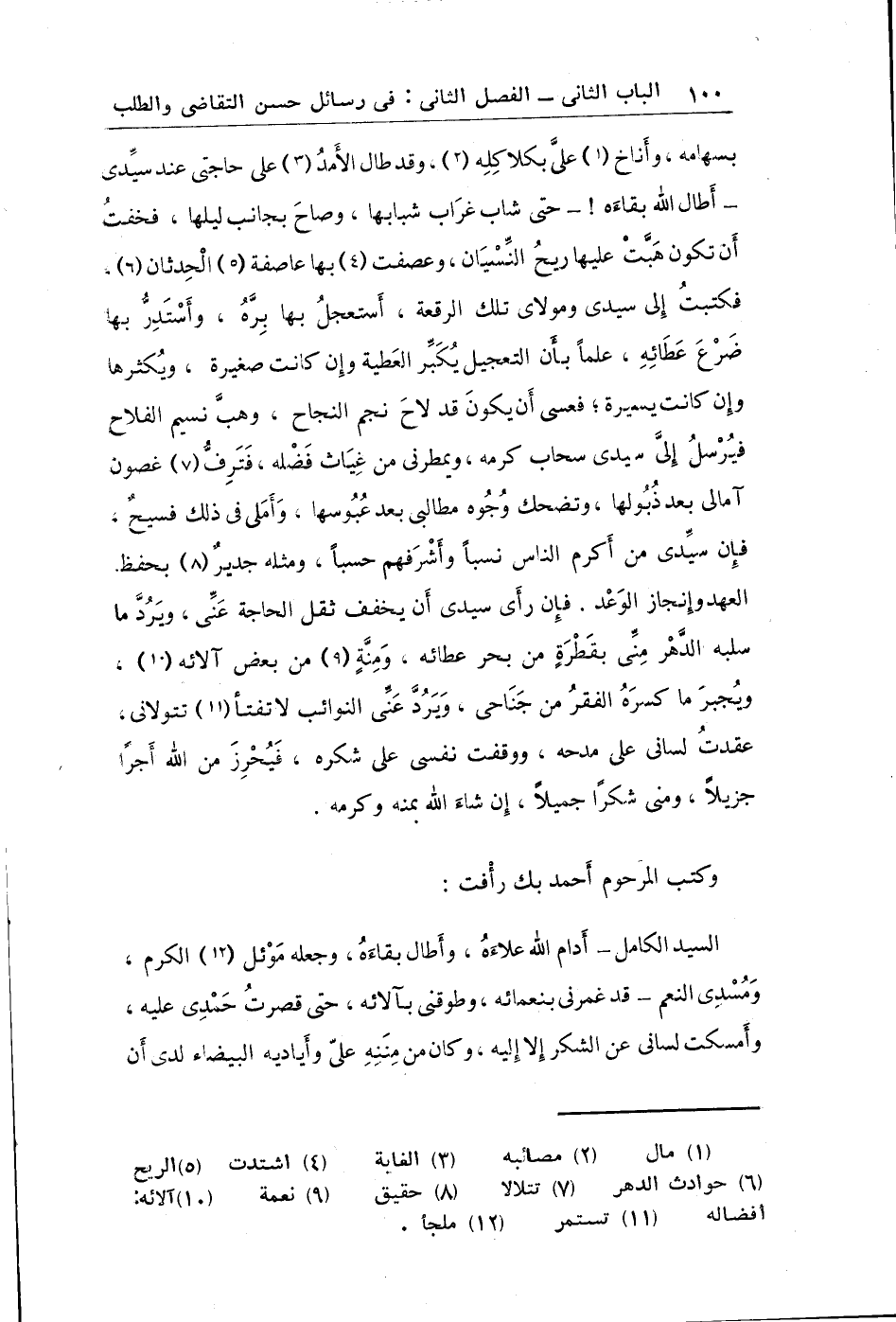 السيد الكامل أدام الله علاءه وأطال بقاءه وجعله موئل الكرم ومسدي النعم قد غمرني بنعمائه وطوقني بآلائه حتى قصرت حمدي عليه وأمسكت لساني عن الشكر إلا إليه وكان من مننه علي وأياديه