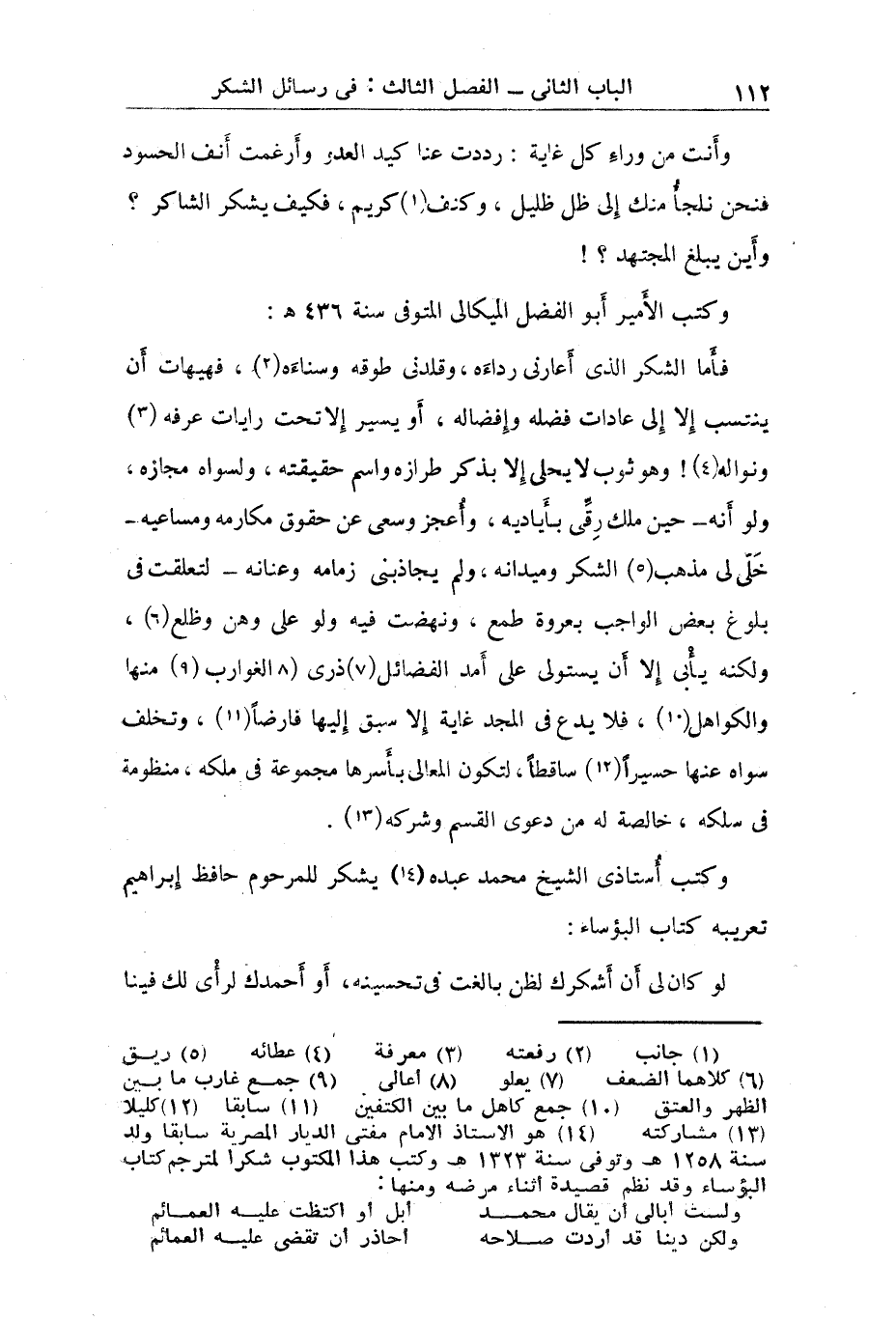 أنف الحسود) فنحن نلجأ منك إلى ظل ظليل وكنف كريم فكيف يشكر الشاكر وأين يبلغ جهد المجتهد.