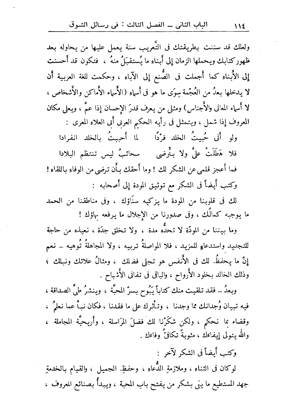 "وكتب أيضاً في الشكر مع المودة إلى بعض أصحابه"