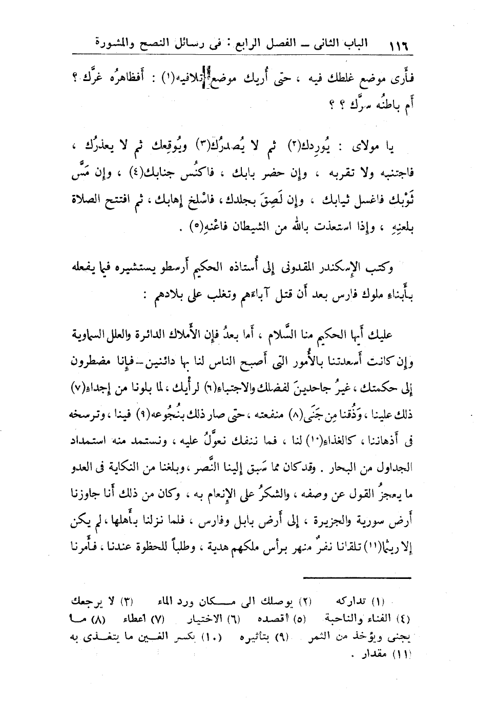 "وكتب الاسكندر المقدوني إلى أستاذه الحكيم أرسطو"