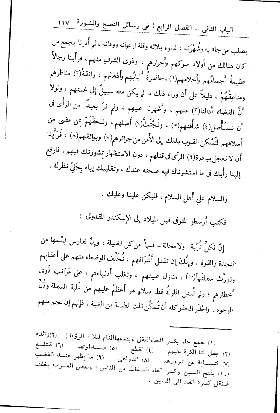 "وكتب أرسطو المتوفى قبل الميلاد سنة 322 إلى الاسكندر المقدوني"