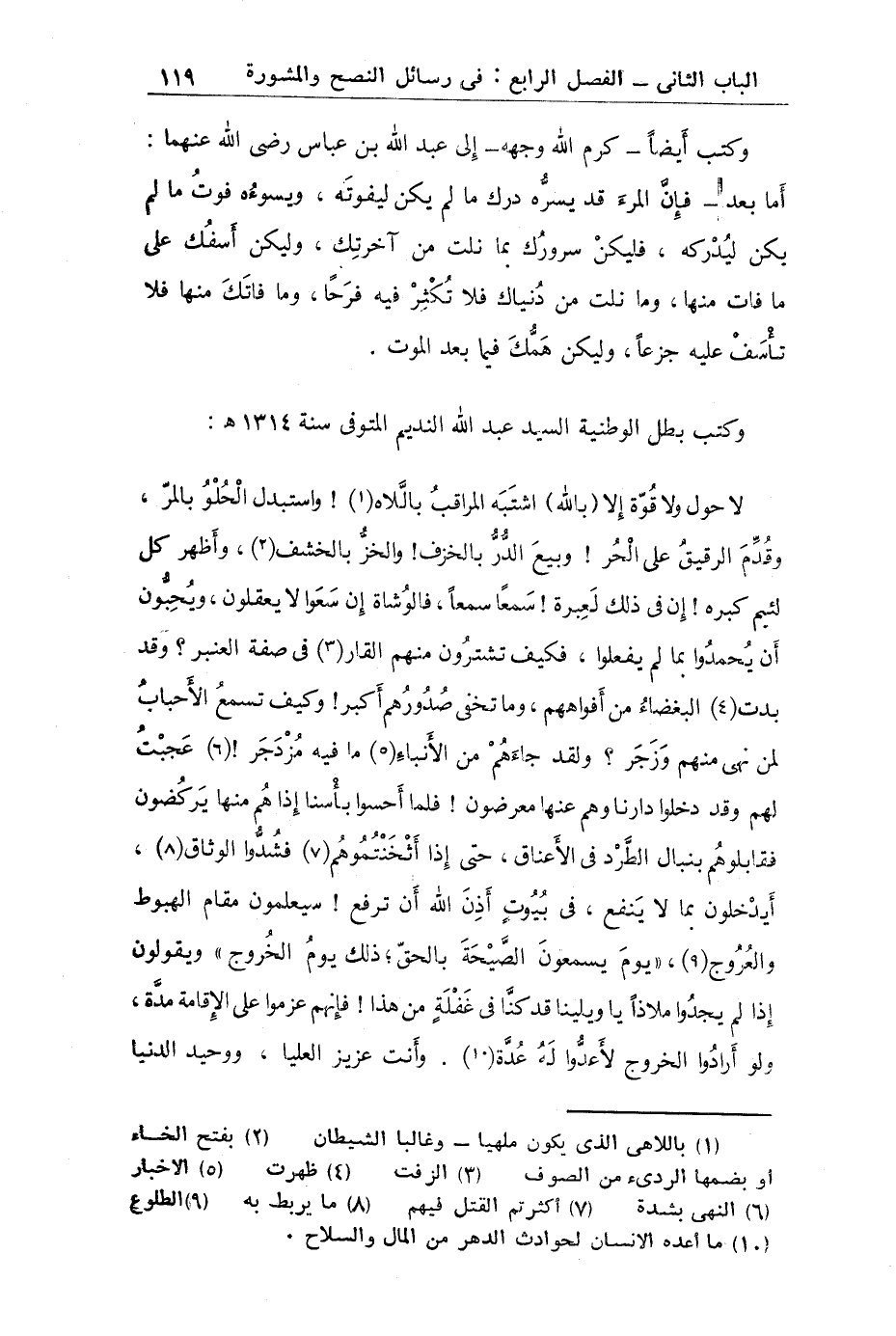 "وكتب أيضاً كرم الله وجهه إلى عبد الله بن عباس رضي الله عنهما"