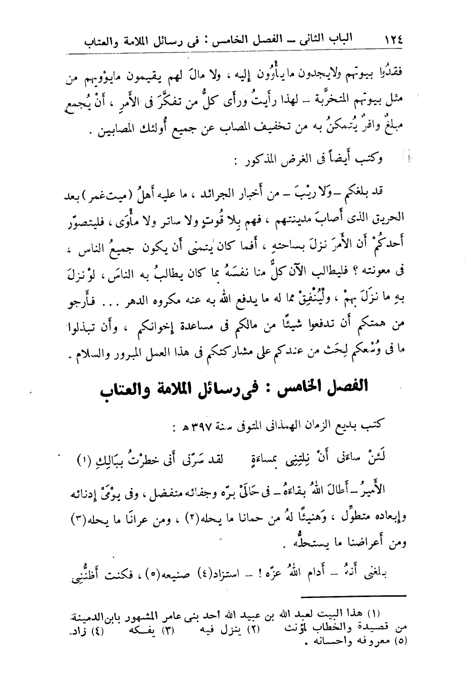 الأمير أطال الله بقاءه في حالي بره وجفائه متفضل وفي يومي إدنائه وإبعاده متطول وهنيئاً له من حمانا ما يحله ومن عرانا ما يحله ومن أعراضنا ما يستحله: بلغني انه أدام الله عزه استزاد صنيعه فكنت أظنني