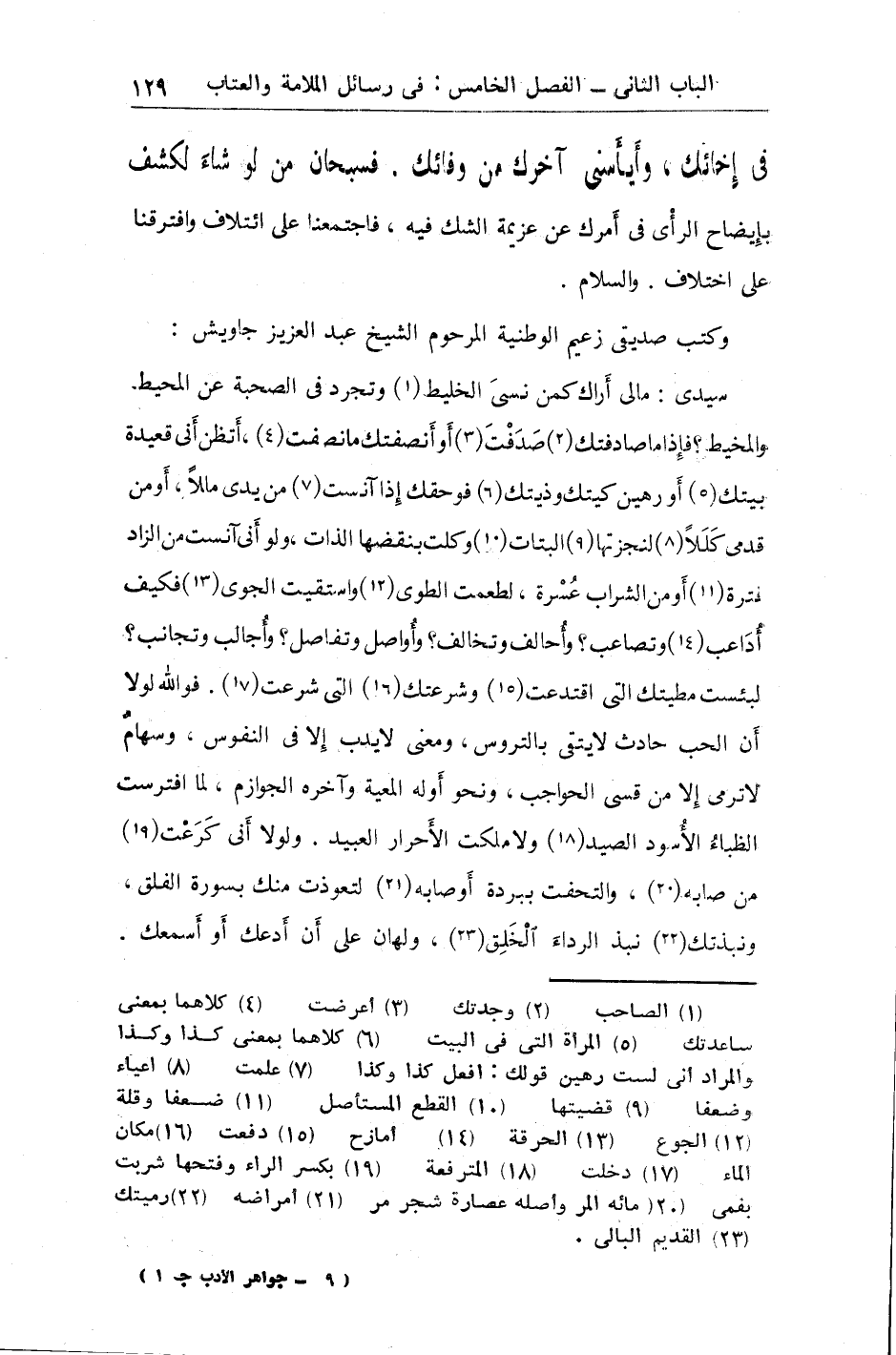 "وكتب صديقي الأوفى زعيم الوطنية الشيخ عبد العزيز جاويش"