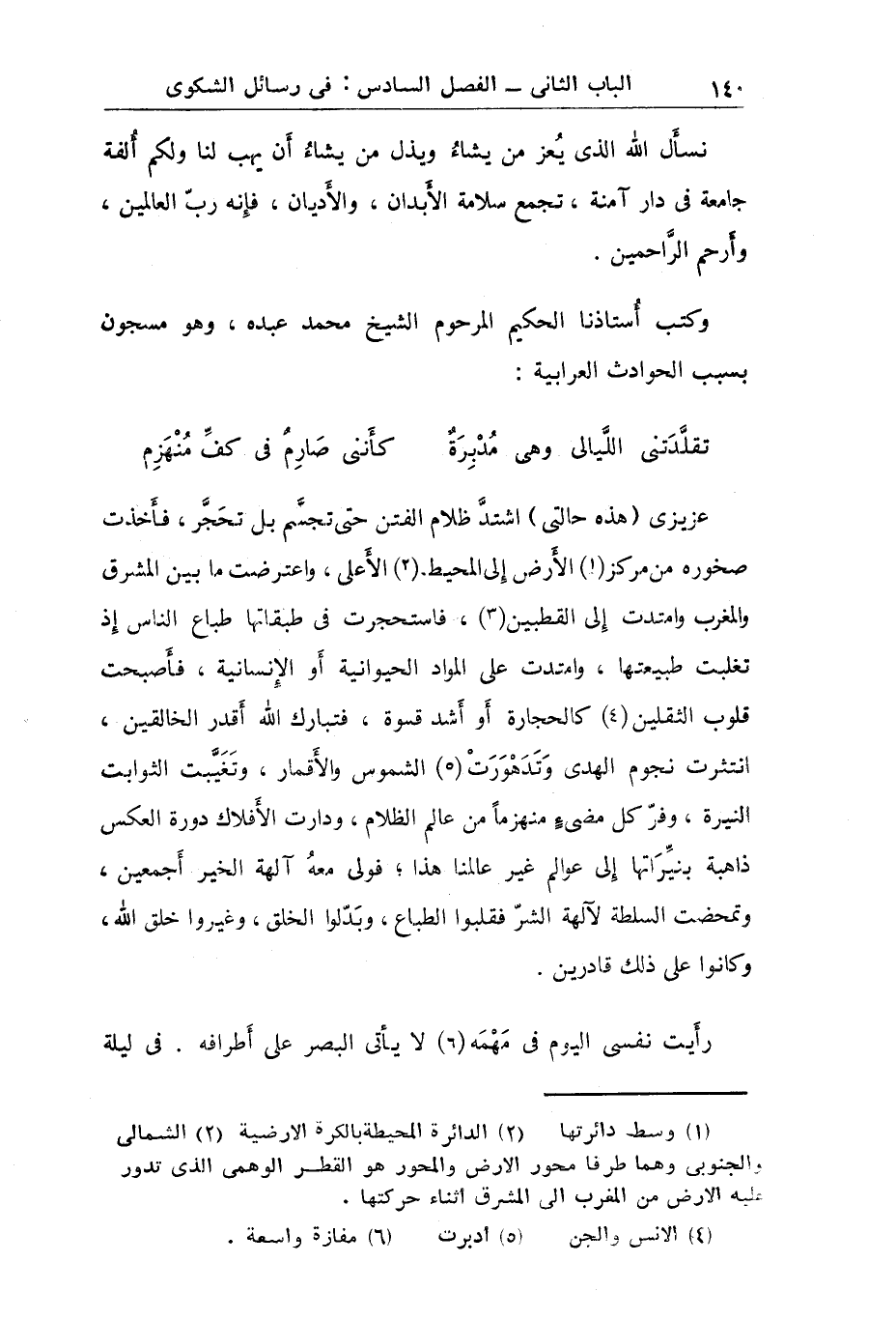 "وكتب أستاذي الحكيم الشيخ محمد عبده وهو مسجون
