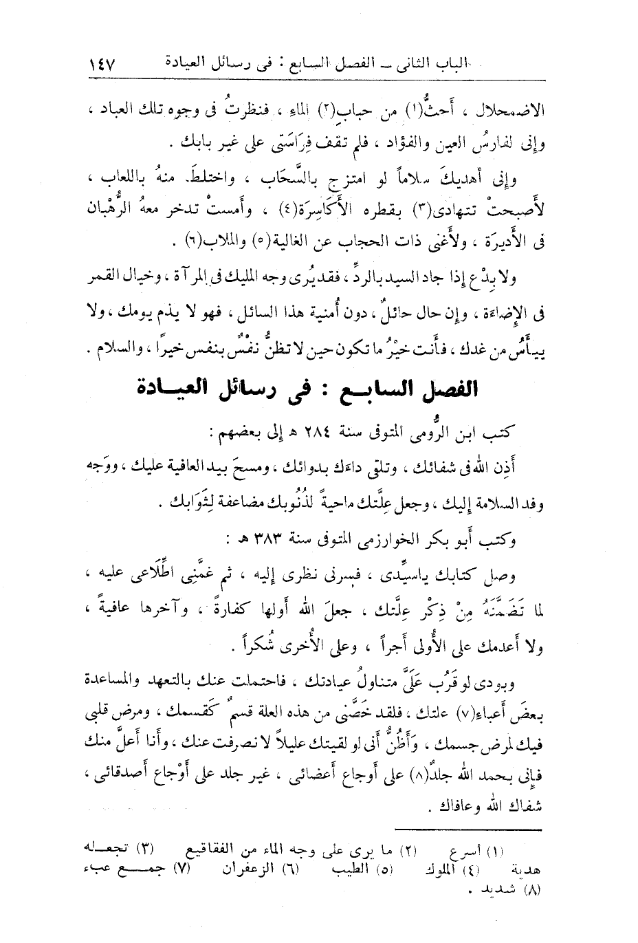الفصل السابع في رسائل العيادة