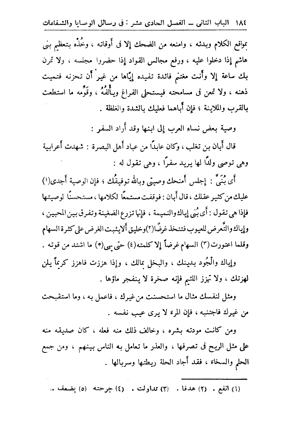 "وصية بعض نساء العرب إلى ابنها وقد أراد السفر"