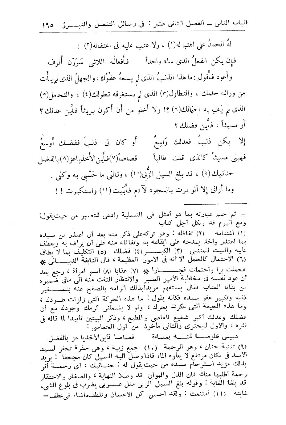 وأعود فأقول ما هذا الذنب الذي لم يسعه عفوك والجهل إلي لم يأت من ورائه حلمك والتطاول الذي لم تستغرقه تطولك والتحامل الذي لم يف به احتمالك ولا أخلو من أن أكون بريئاً فأين عدلك أو مسيئاً فأين فضلك.