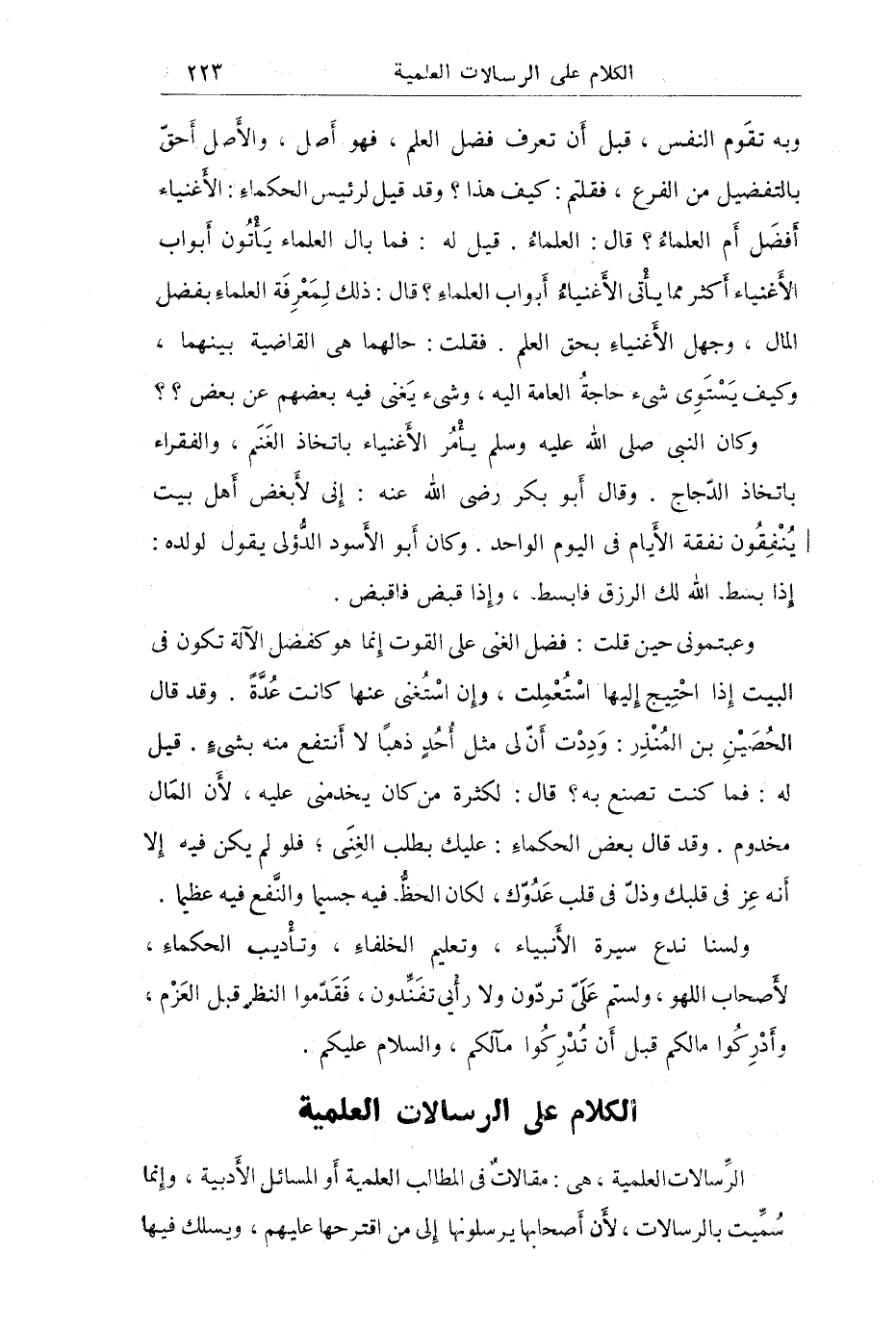 الكلام على الرسالات العلمية