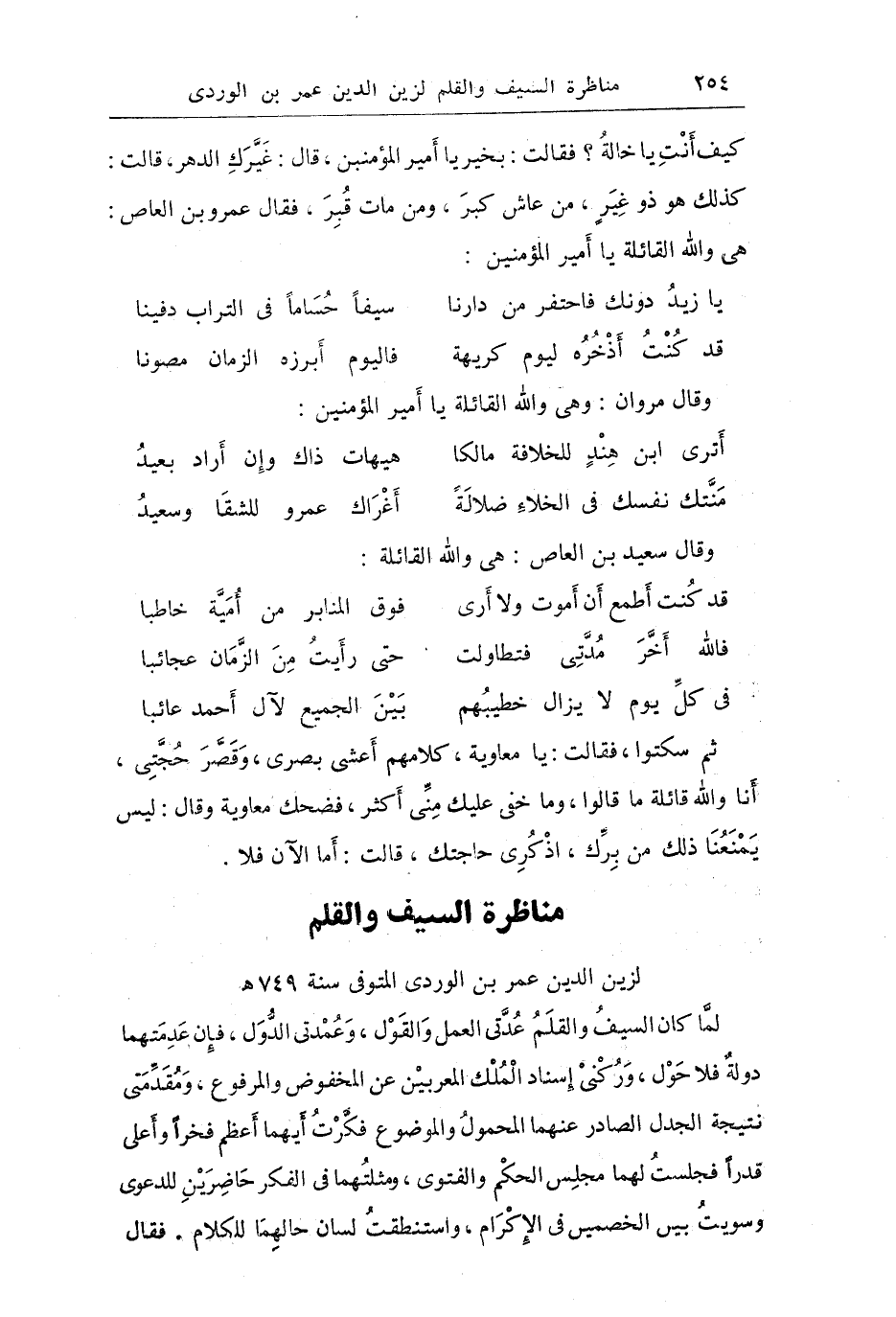 "مناظرة السيف والقلم لزين الدين عمر بن الوردي المتوفى سنة 749هـ?"