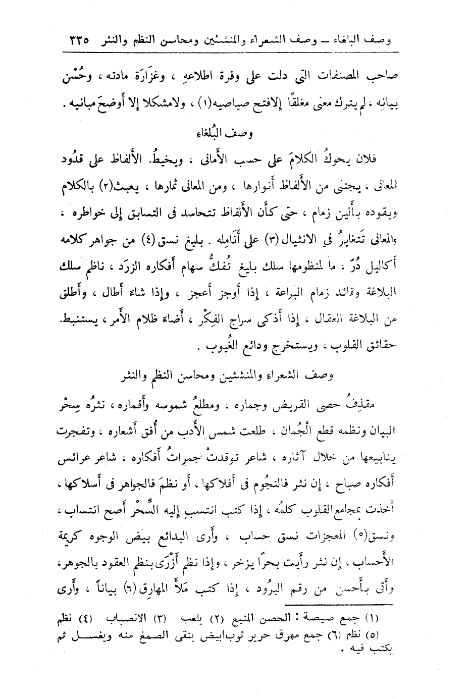 "وصف الشعراء والمنشئين ومحاسن النظم والنثر"