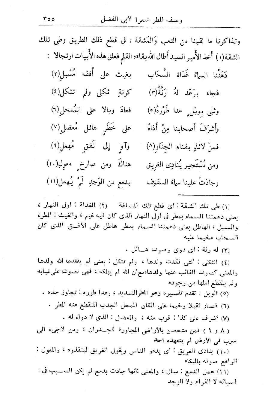 ما لقينا من التعب والمشقة في قطع ذلك الطريق وطي لك المشقة أخذ الأمير السيد طال الله بقاءه القلم فعلق هذه الأبيات ارتجالاً: