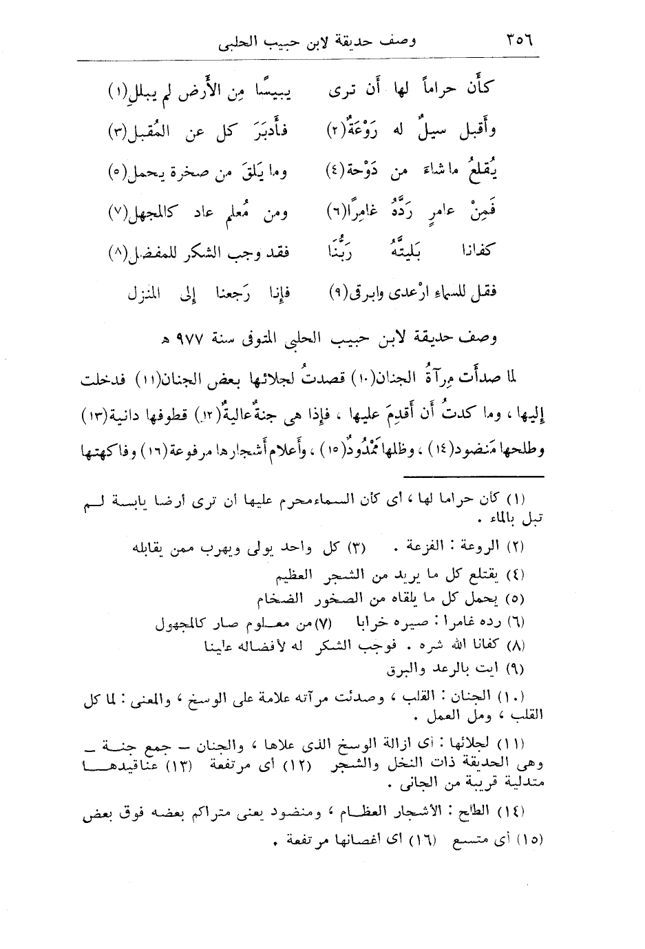 "ووصف ابن حبيب الحلبي المتوفى سنة 779 هـ? حديقة"