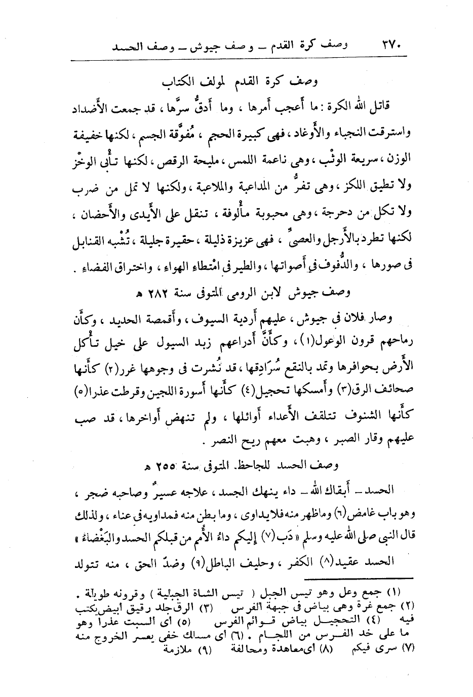 "ووصف الحسد الجاحظ المتوفى سنة 255 هـ?"