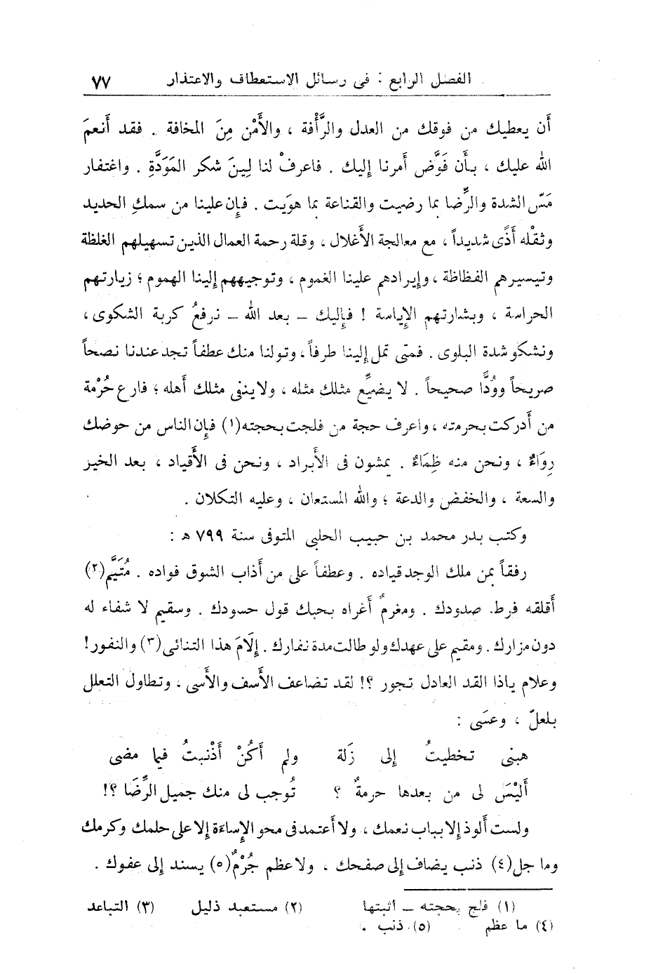 رفقاً بمن ملك الوجد قياده وعطفاً على من أذاب الشوق فؤاده متيم أقلقه فرط صدودك ومغرم أغراه بحبك قول حسودك وسقيم لا شفاء له دون مزارك ومقيم على عهدك ولو طالت مدة نفارك إلى م هذا التنائي والنفور وعلام ياذا القد العادل تجور لقد تضاعفت الأسف والأسى وتطاول التعلل بعل وعسى.