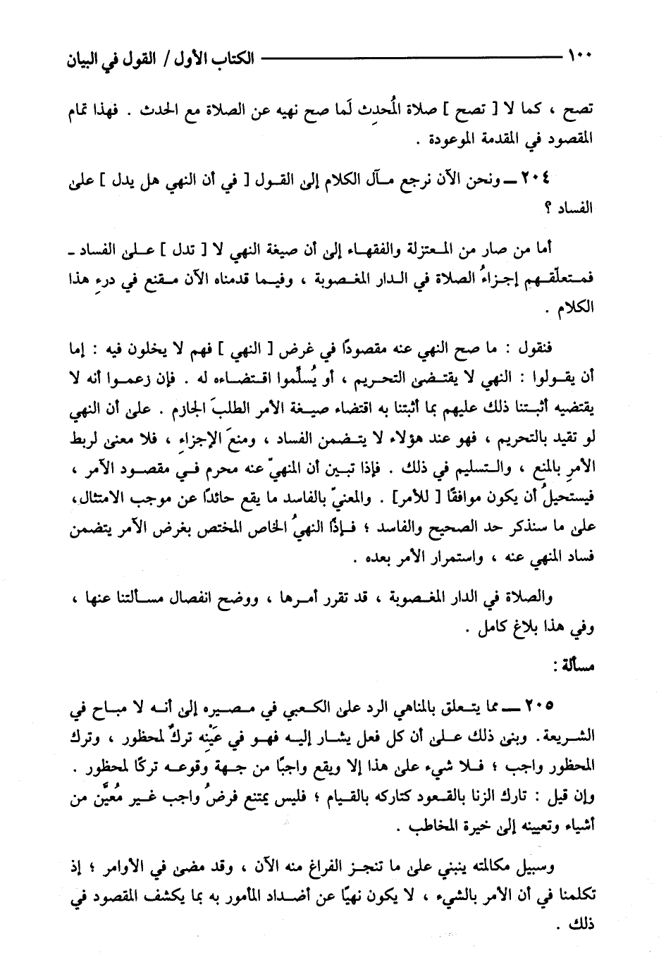 204- ونحن الآن نرجع مآل الكلام إلى القول [في أن النهي هل يدل] على الفساد.