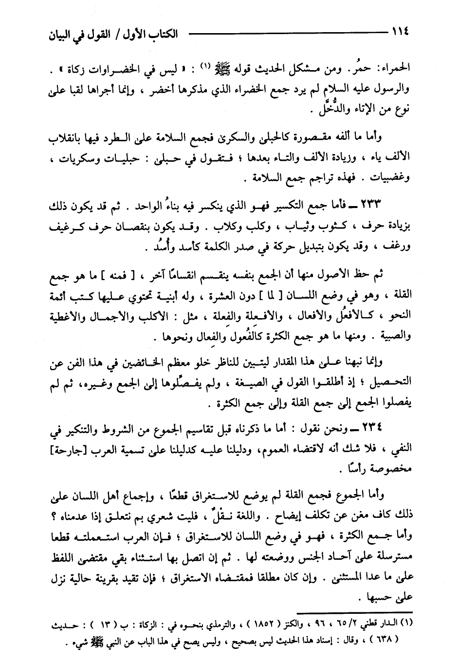 233- فأما جمع التكسير فهو الذي نكسر فيه بناء الواحد ثم قد يكون ذلك بزيادة حرف كثوب وثياب وكلب وكلاب وقد يكون بنقصان حرف كرغيف ورغف قد يكون بتبديل حركة في صدر الكلمة كأسد وأسد.