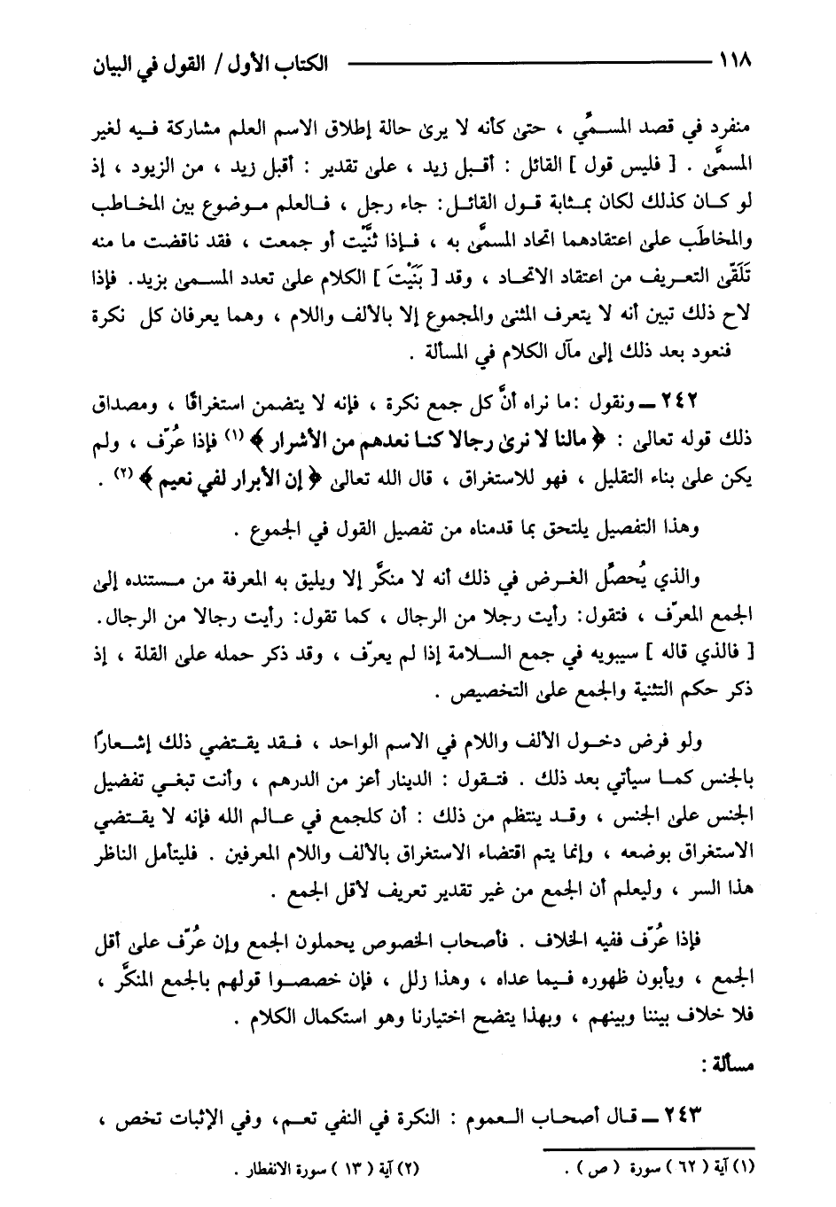 243- قال أصحاب العموم النكرة في النفي تعم وفي الإثبات تخص.